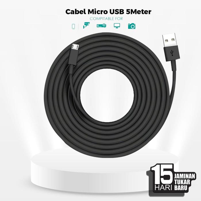 CABLE/KABEL MICRO USB 5 METER CABLE POWER FOR IP CAMERA,ACTION CAM - HITAM