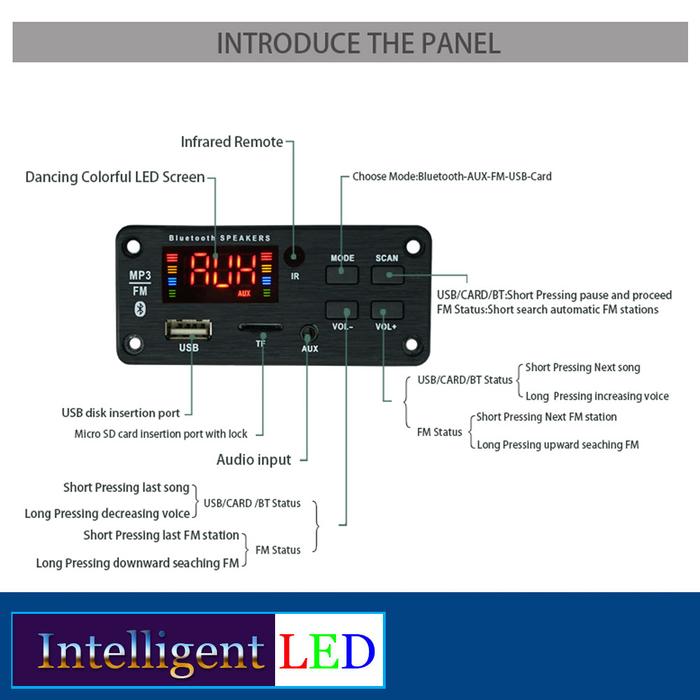 MP3 KIT PLAYER BOARD BLUETOOTH USB TFT FM RADIO DECODER D022BT
