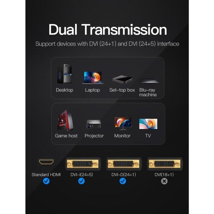 VENTION ECD CONVERTER DVI MALE TO HDMI FEMALE DUAL DIRECTIONAL ADAPTER - DVI TO HDMI
