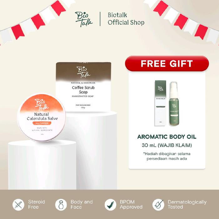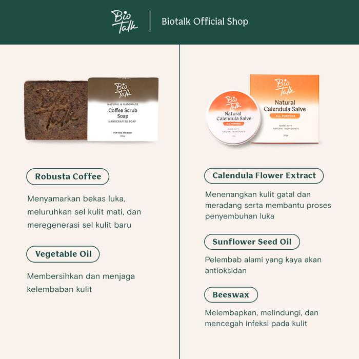 Biotalk Bundle Bekas Luka | Coffee Scrub Soap + Calendula Salve | Menyamarkan Bekas Luka Strechmark | Sabun Mandi Kopi N