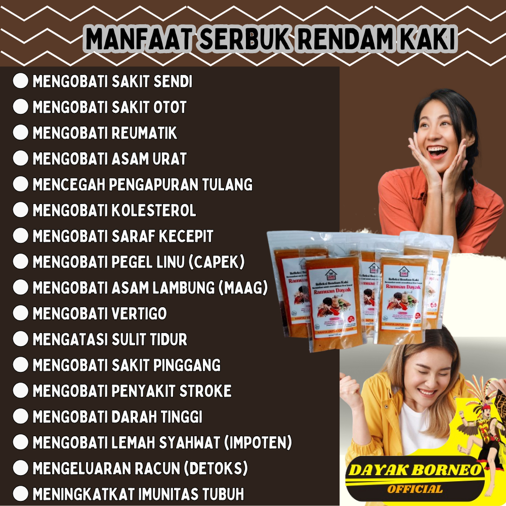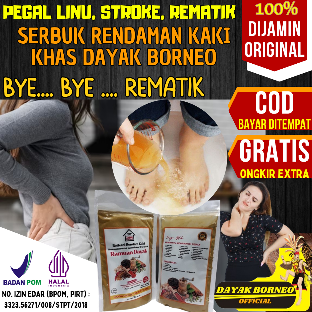 Serbuk Refleksi Rendam Rendaman Kaki Ramuan Dayak Asli 100 Gram Obat Herbal Ampuh Sakit Sendi Pegal Linu Reumatik Asam Urat Stroke Detoks Nyeri Otot Kolesterol Lemah Syahwat