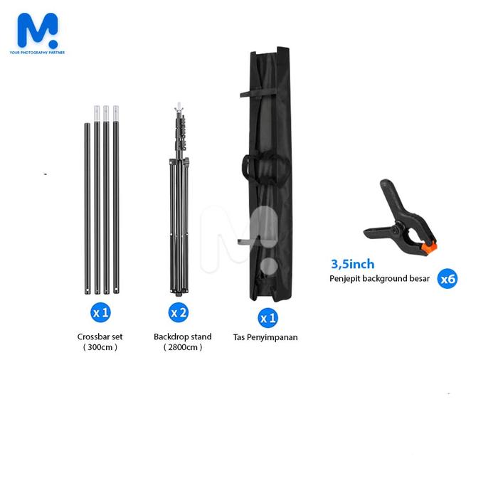 BACKGROUND STAND PORTABLE MIDIO 3M + TAS & 3 PENJEPIT 3.5 INCH UNTUK STUDIO FOTO & BACKDROP