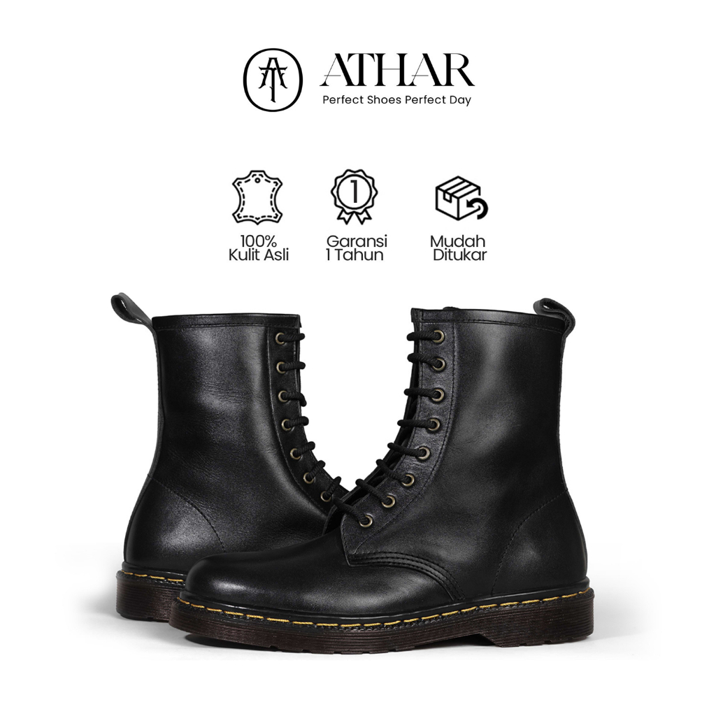 Athar Hamorii - Sepatu Boots Pria Docmart Hitam Kulit Asli
