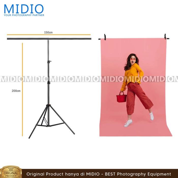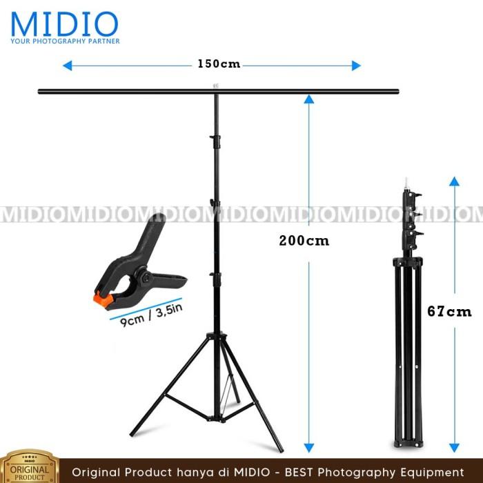 PAKET BACKGROUND STAND 2M + ALAS FOTO MIDIO 240X140CM KULIT SINTETIS DOFF STUDIO FOTO - TINGGI ADJUSTABLE 69CM SAMPAI 200CM - PUTIH