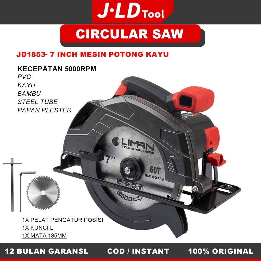 JLD CIRCULAR SAW 7INCH/KAYU CIRCULAR SAW LISTRIK/Mesin Gergaji/Circular Saw jld 185mm/Mesin Potong Kayu/PVC/Bambu/Steel