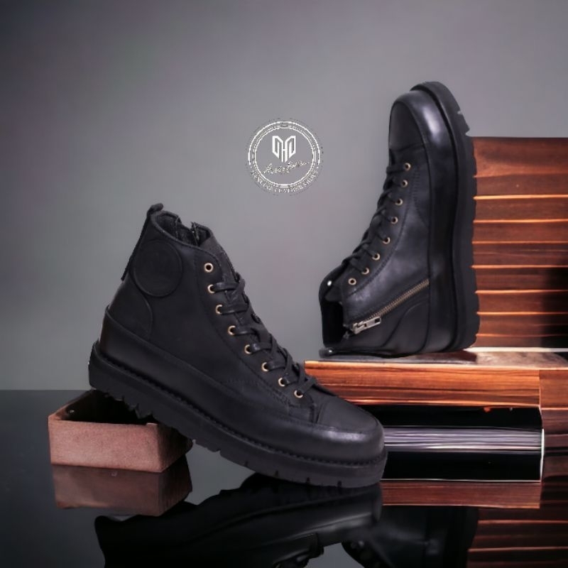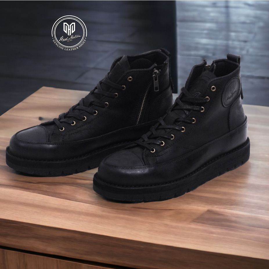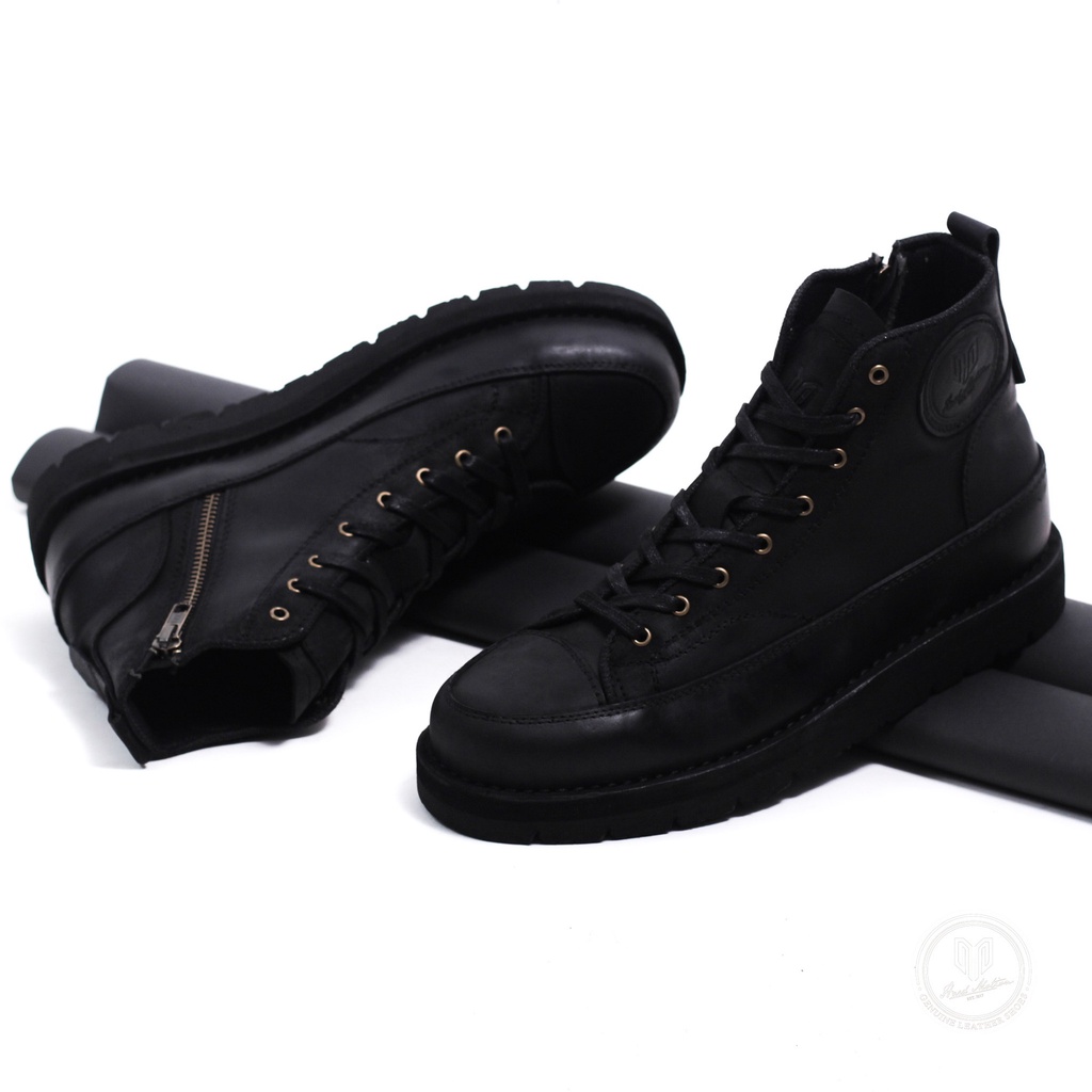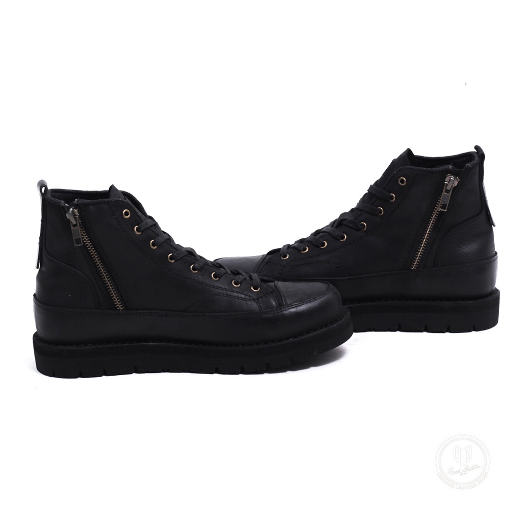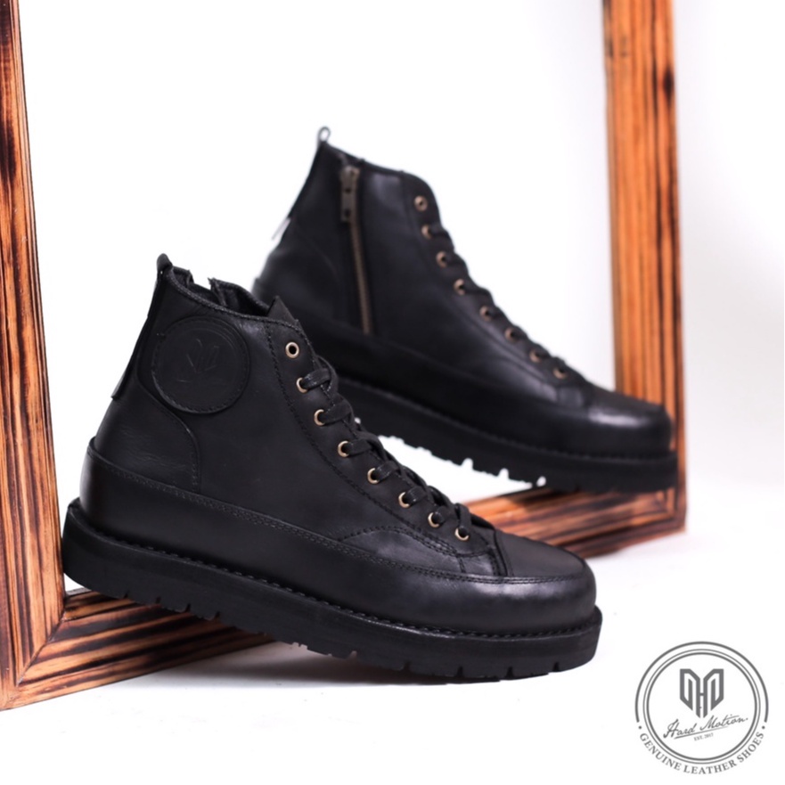 Hard Motion Zipup Sepatu Boots Rasleting Pria Kulit Asli