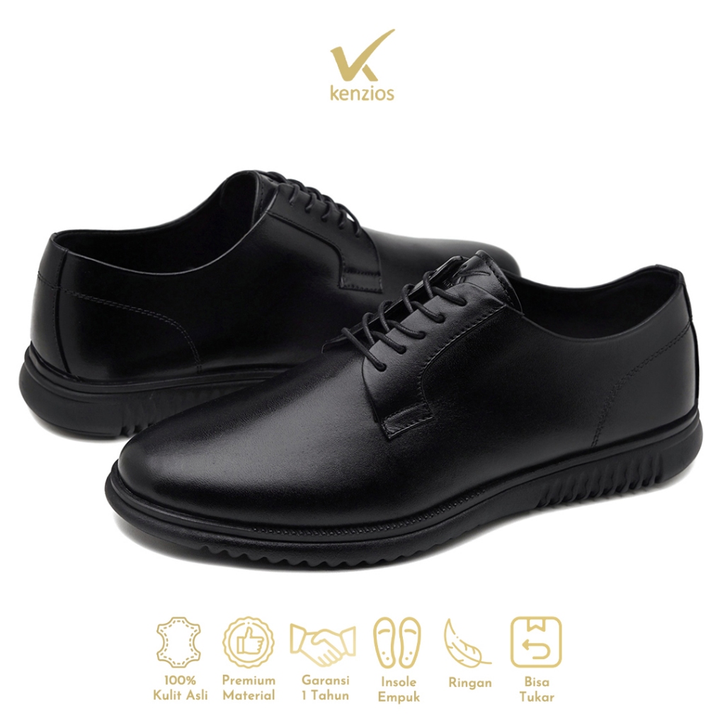 Kenzios Plato Black Series Sepatu Formal Pria Kulit Asli