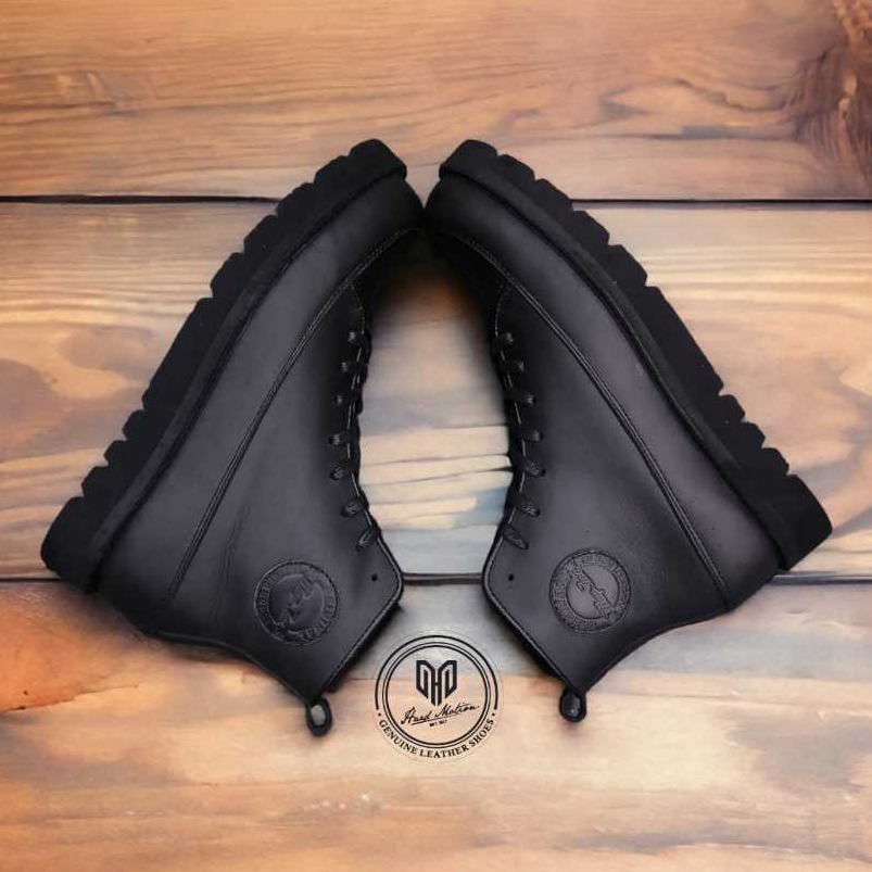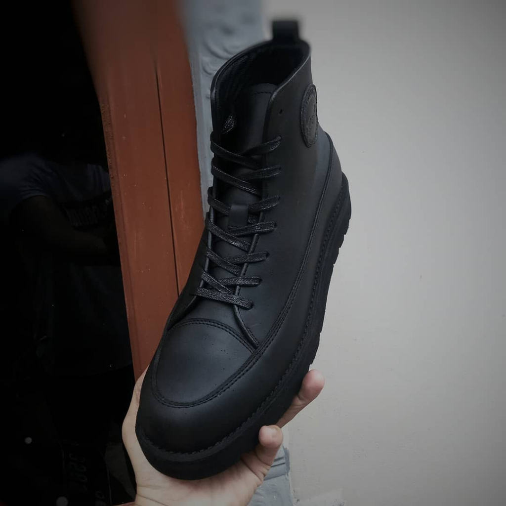 Hard Motion Lexus Full Black Sepatu Boots Sneakers Pria Kulit Asli Tinggi Premium High Quality Septu Bikers Sepatu Touring