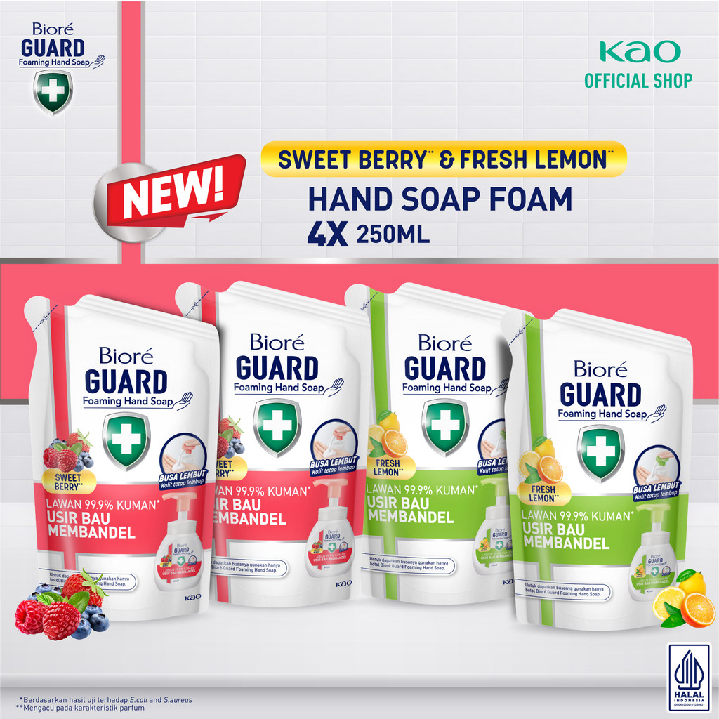 Biore Guard Hand Wash Foam Sweet Berry 2x 250 ml + Fresh Lemon 2x 250 ml