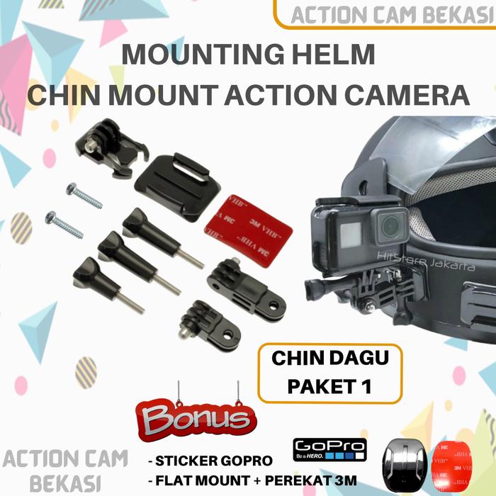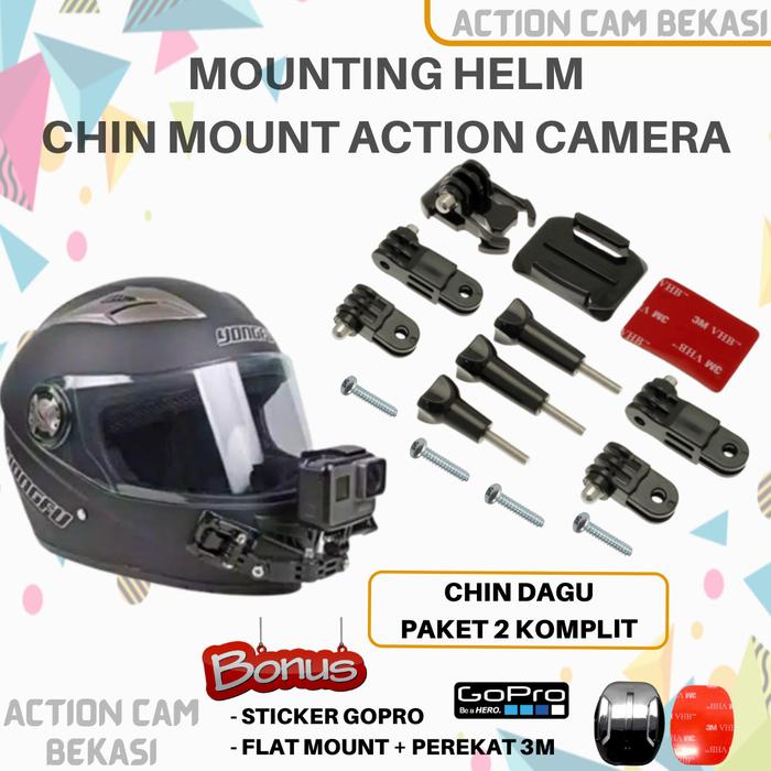 MOUNTING HELM CHIN MOUNT HELMET GOPRO YI ACTION CAM CURVED MOUNT MIJIA - PAKET 2 KOMPLIT