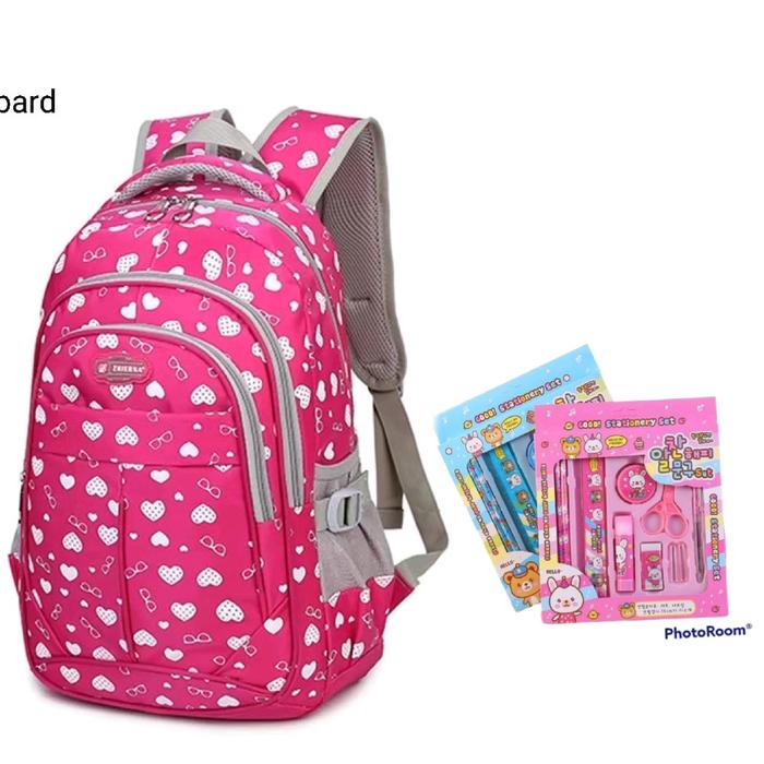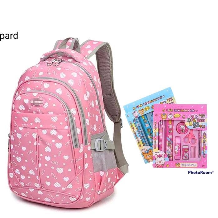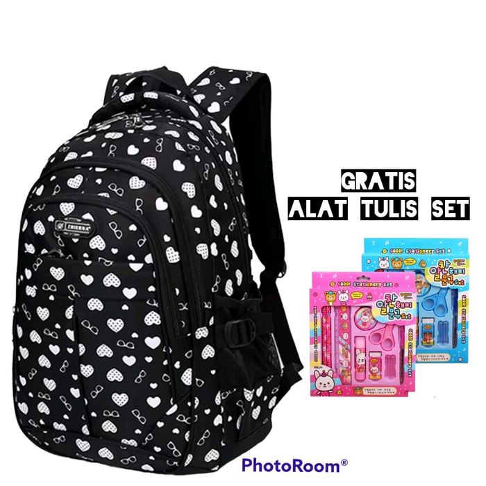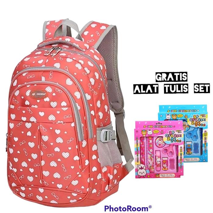 TAS ANAK SEKOLAH MOTIF LOVE GRATIS ALAT TULIS SET FASHION RANSEL - FANTA