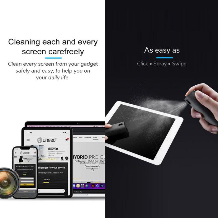 UNEED LCD SCREEN CLEANER WITH MICROFIBER PEMBERSIH LAYAR FOR SMARTPHONE TABLET LAPTOP - UCL151 - GREY