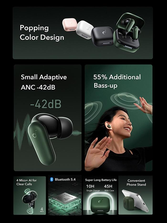 (NEW LAUNCH) SOUNDCORE ANKER R50I NC EARBUDS ADAPTIVE NOISE CANCELING HEADSET EARPHONE BLUETOOTH 5.4 TWS LOW LATENCY FOR GAME LONG BATTERY 4 MICS IP54 -A3959 - BLACK