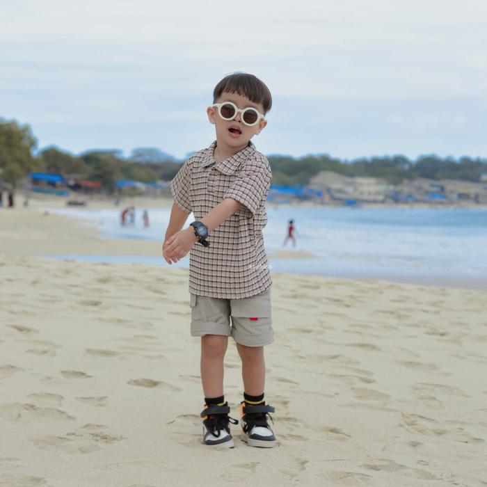 SOOHISO KAOS KERAH BAYI DAN ANAK LAKI LAKI / TWEED POLO SHIRT ANAK DAN BAYI LAKI LAKI USIA 1-6 TAHUN - STONE GREY, S