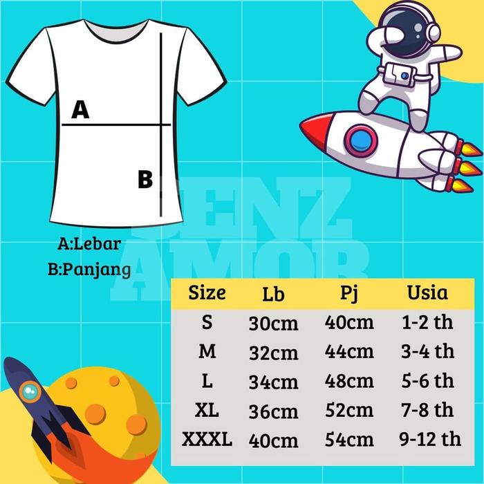 BAJU KAOS ANAK LAKI-LAKI PEREMPUAN UMUR 1-12 TAHUN KATUN COMBED 30S - S