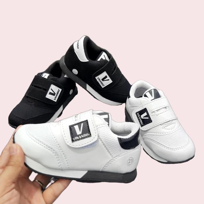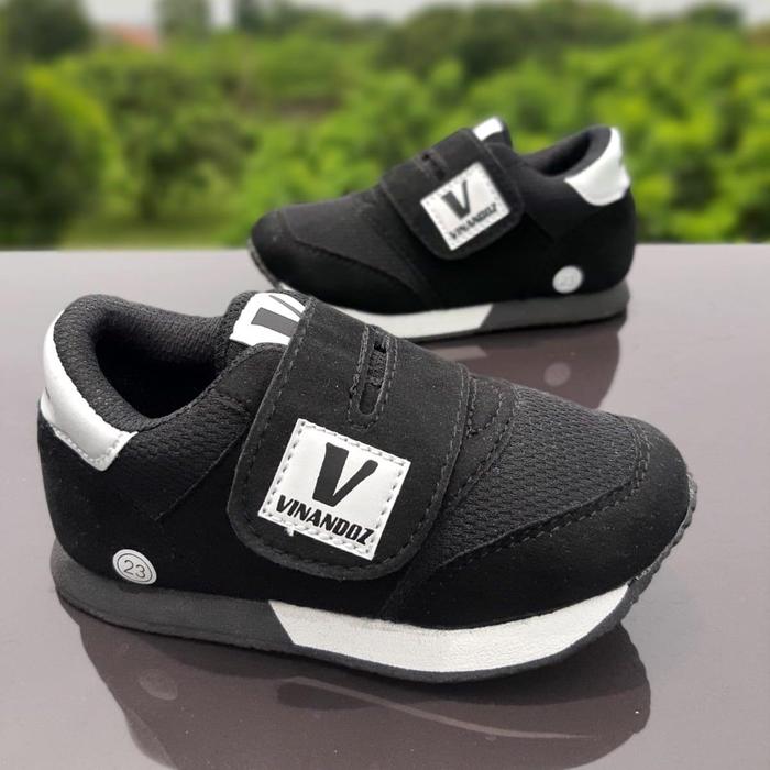SSL07 SEPATU SNEAKER ANAK UNISEX 1 SAMPAI 9 TAHUN SEPATU SEKOLAH ANAK TK DAN SD BALITA CEWEK COWOK HITAM PUTIH KAKI PEREMPUAN - HITAM, SIZE 22