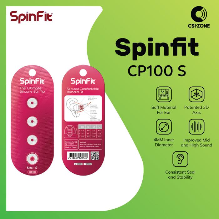SPINFIT CP100 EARPHONE EARTIPS - SS, 1 PAIR