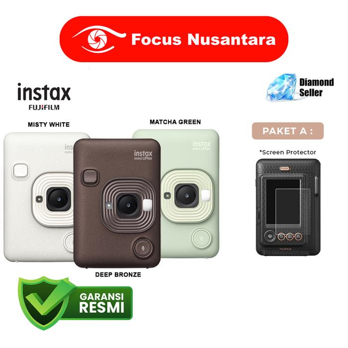 FUJIFILM INSTAX MINI LIPLAY CAMERA - STANDARD PACKAGE, MISTY WHITE