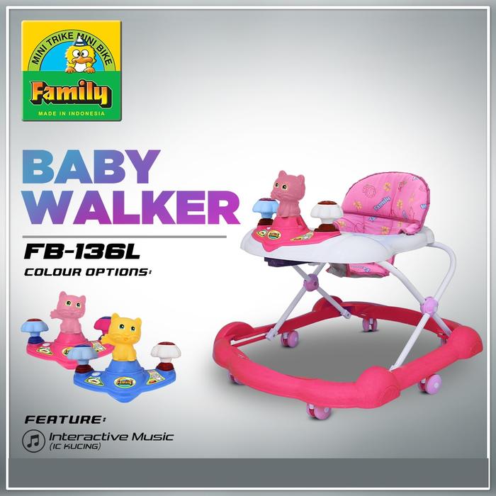 BABY WALKER FAMILY 136L RODA BELAJAR JALAN - MERAH MUDA