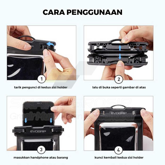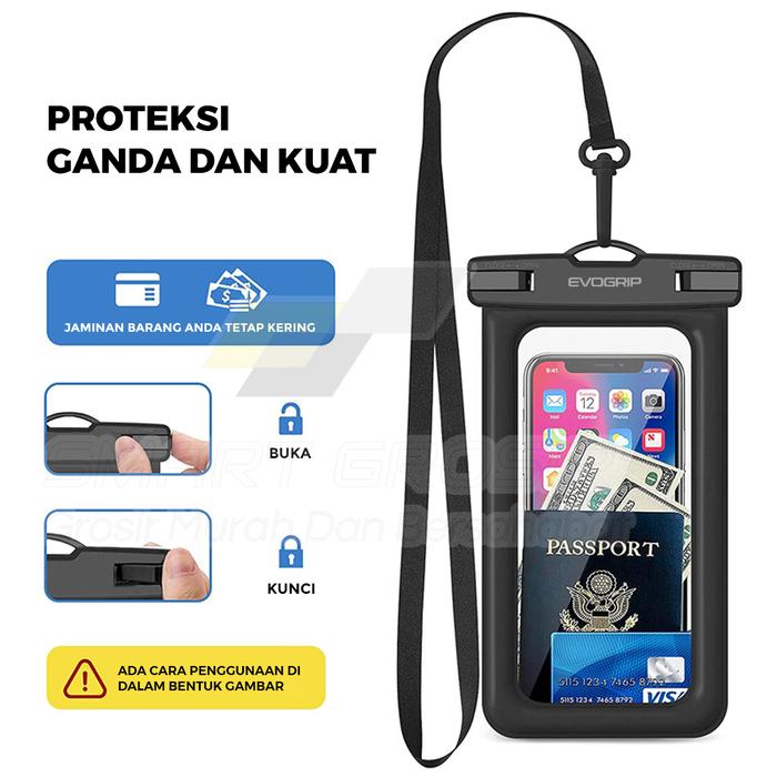WATERPROOF BAG HP MULTIFUNGSI EVOGRIP WB10 KANTONG PELINDUNG HP ANTI AIR CASING HANDPHONE TAS PLASTIK HOLDER MOTOR - HITAM