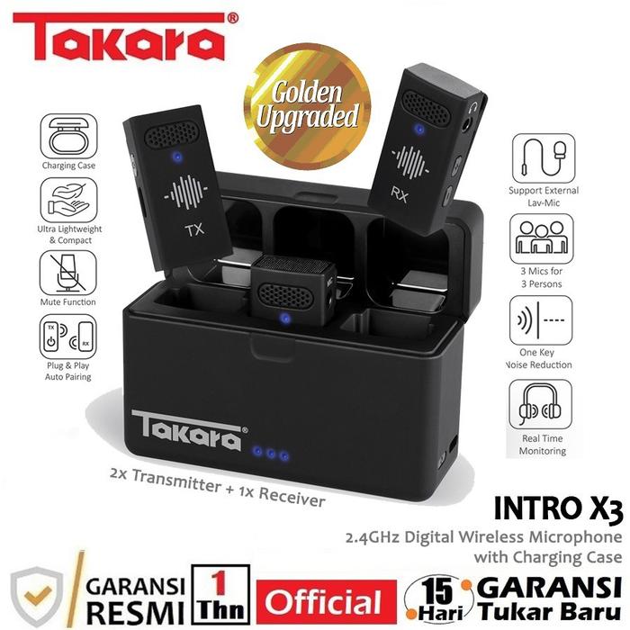 TAKARA INTRO X3 DIGITAL WIRELESS MIC MICROPHONE WITH CHARGING CASE GOLDEN LIGHTING - INTRO X3 ONLY