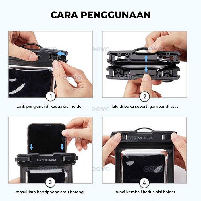 EVOGRIP WB10 WATERPROOF BAG KANTONG HP ANTI AIR POUCH SARUNG TEMPAT HANDPHONE HOLDER HP MOTOR WATERPROOF - HITAM