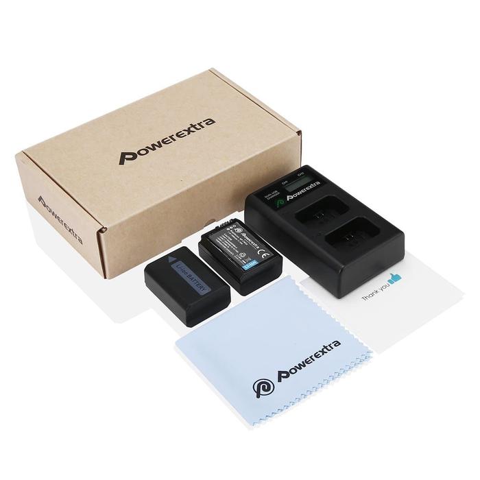 POWEREXTRA BATTERY SONY NP-FW50 2-PACK WITH DUAL CHARGER FOR A6000 A6300 A6400 A6500 A5100 A7 A7R A7S NEX