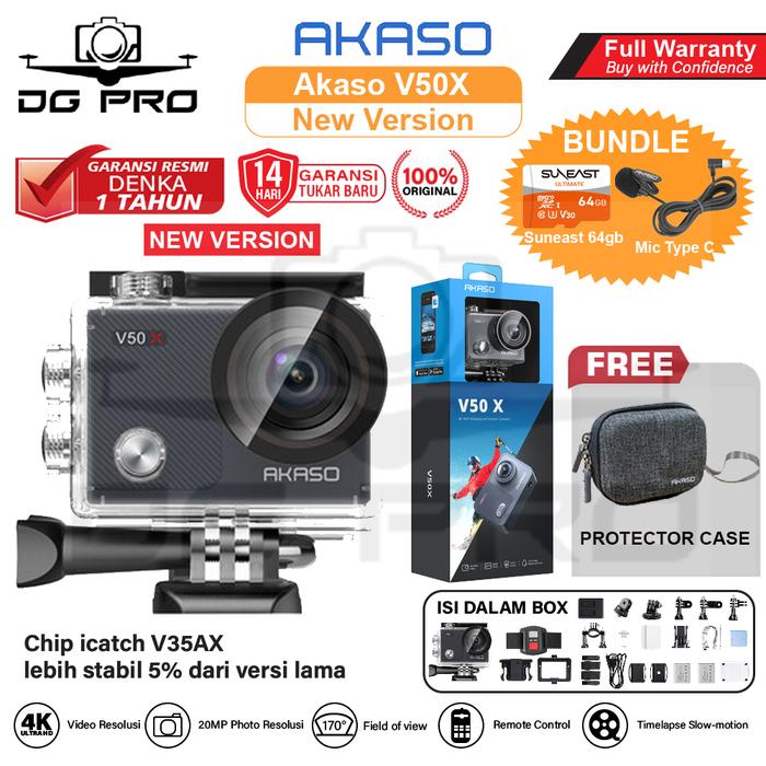 AKASO V50X CUBE 4K ACTION CAM CAMERA NEW VERSION - V50 X / V 50X 4K TYPE-C GARANSI RESMI - V50X NEWVERSION, STANDAR BOX