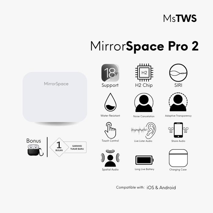 MIRRORSPACE PRO 2 WIRELESS CHARGING CASE TWS BLUETOOTH