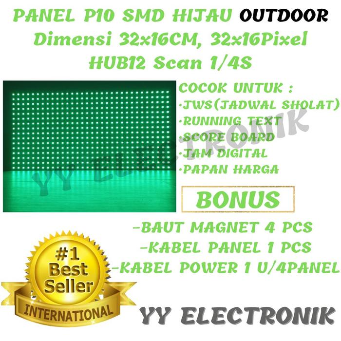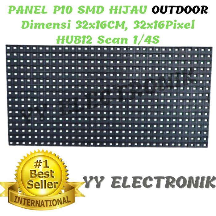 PANEL MODULE MODEL LED P10 RUNNING TEXT SMD HIJAU GREEN OUTDOOR
