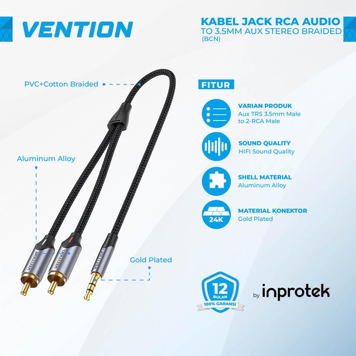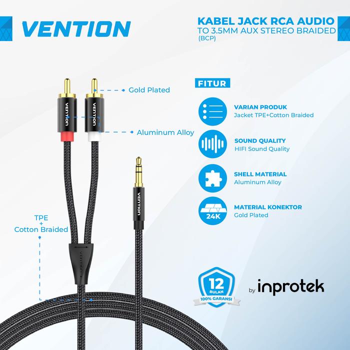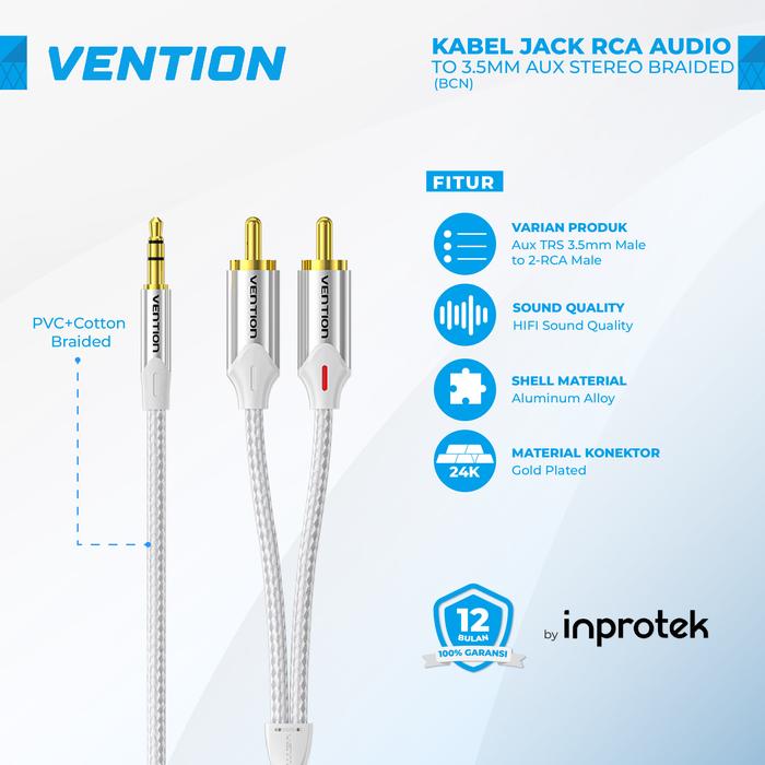 VENTION KABEL JACK RCA AUDIO TO 3.5MM AUX STEREO BRAIDED - BCN, 8 METER