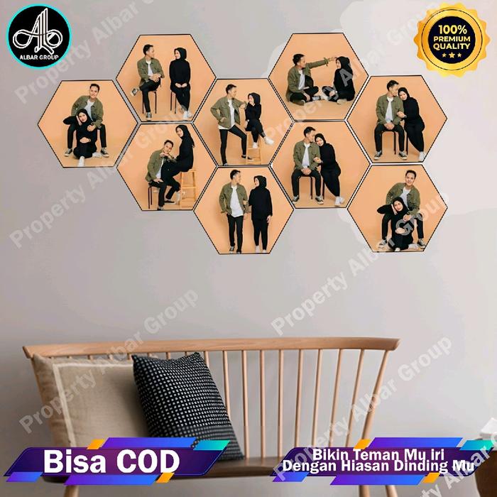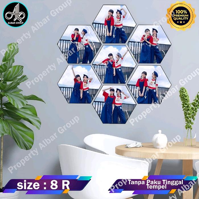 CETAK FOTO BENTUK HEXAGONAL ISI 7 PCS FREE DESAIN DIPASANG DI DINDING - -, -