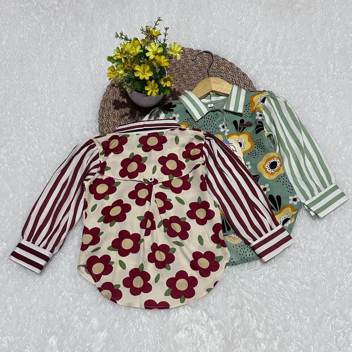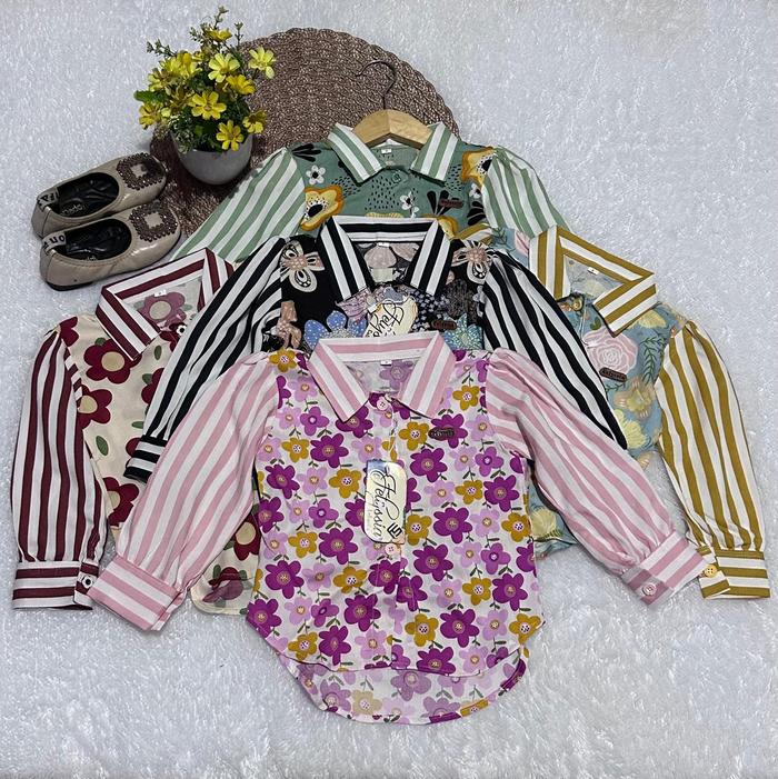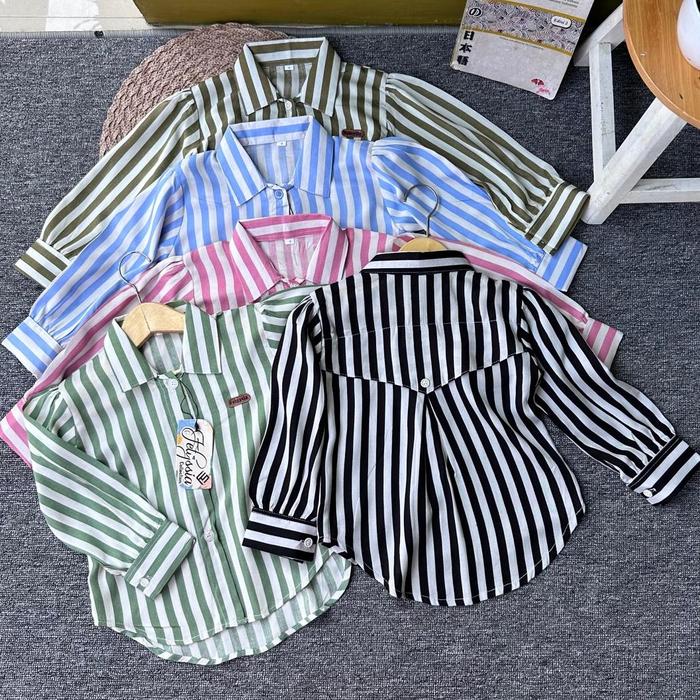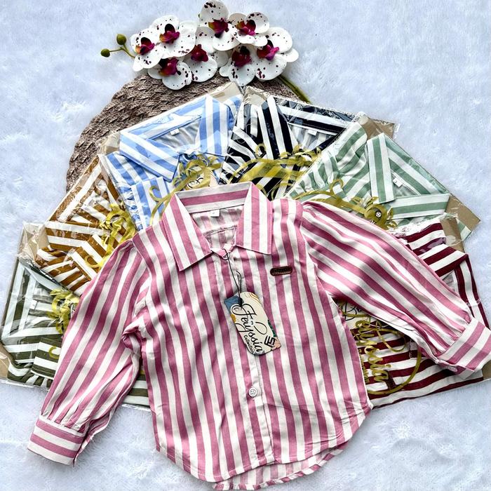 KEMEJA BLOUSE ANAK STRIPE PEREMPUAN UMUR 2-7 TAHUN LENGAN PANJANG KAIN RAYON PREMIUM - BLUSE STRIPE HITAM , NO2 =(1-2TH)