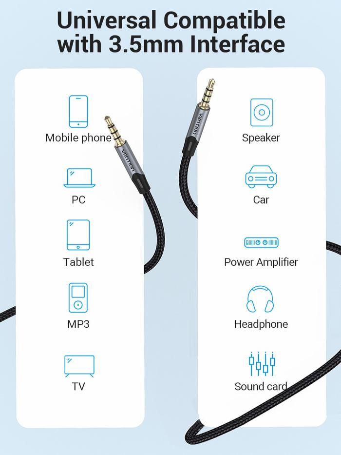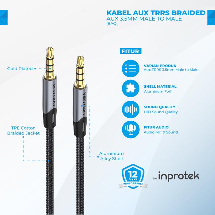 VENTION KABEL AUDIO JACK AUX 3.5MM STEREO HI-FI BRAIDED - BAQ, 2 METER