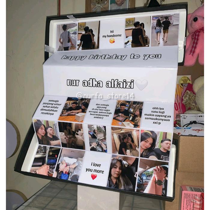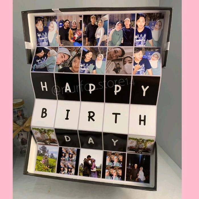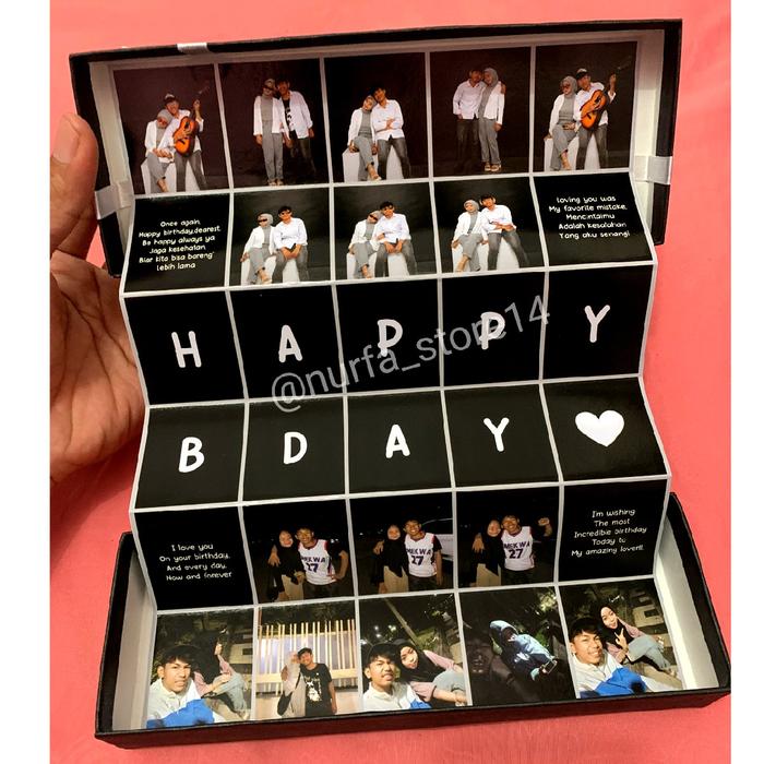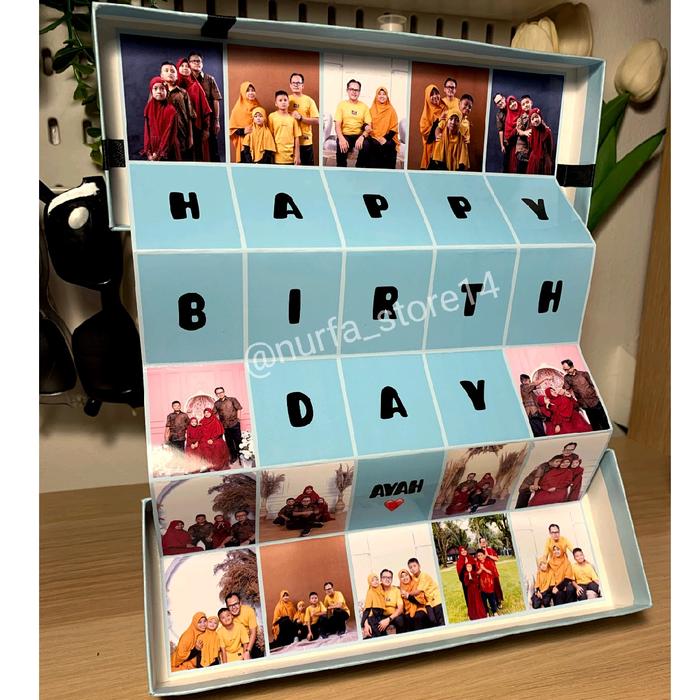 MEMORY BOX KADO ULANG TAHUN ANNIVERSARY WISUDA DLL PHOTOBOX PREMIUM GLOSSY 30 FEED FULL PRINT BEBAS REQUEST KATA & DESAIN EXPRESS 1 HARI JADI GIFT BOX FOTO - DARKBLUE, PENGERJAAN 1 HARI