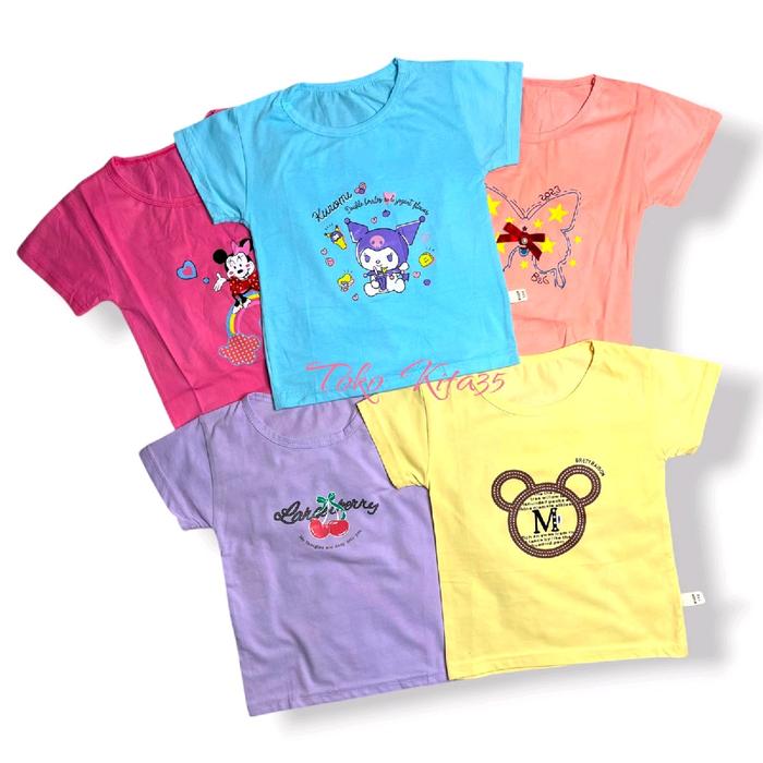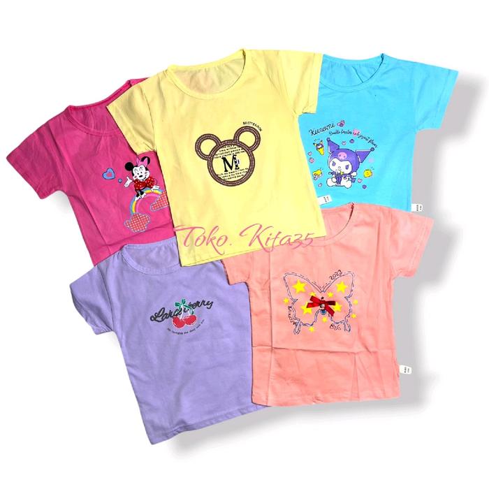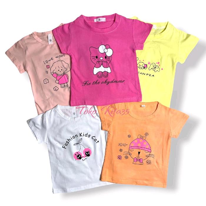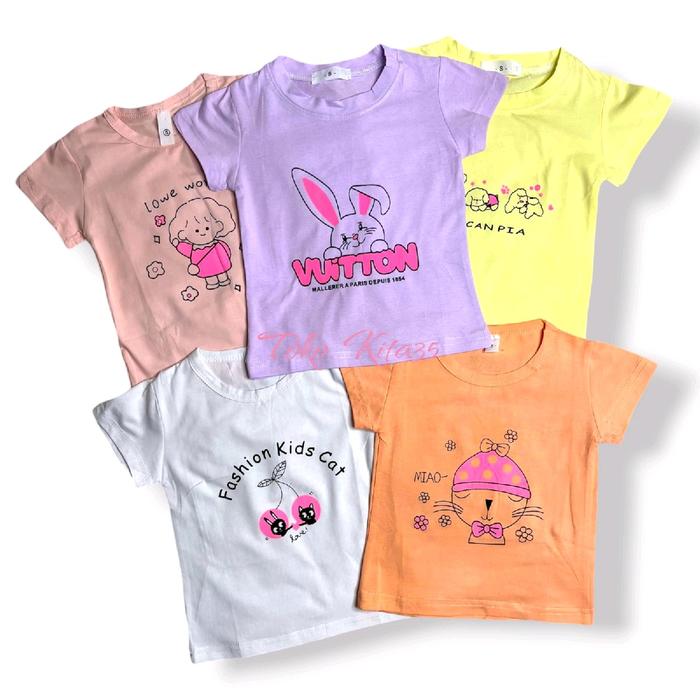 PAKET 5PCS KAOS BAYI ANAK PEREMPUAN PREMIUM FULL KATUN MOTIF SABLON S,M,L,XL - PAKET 3 PCS RANDOM, S (0-6 KG)