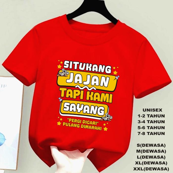 KAOS ATASAN ANAK ANAK SITUKANG JAJAN PRES DEPAN, KAOS OBLONG UNISEX, KAOS KATA KATA - MERAH, 1-2 TAHUN