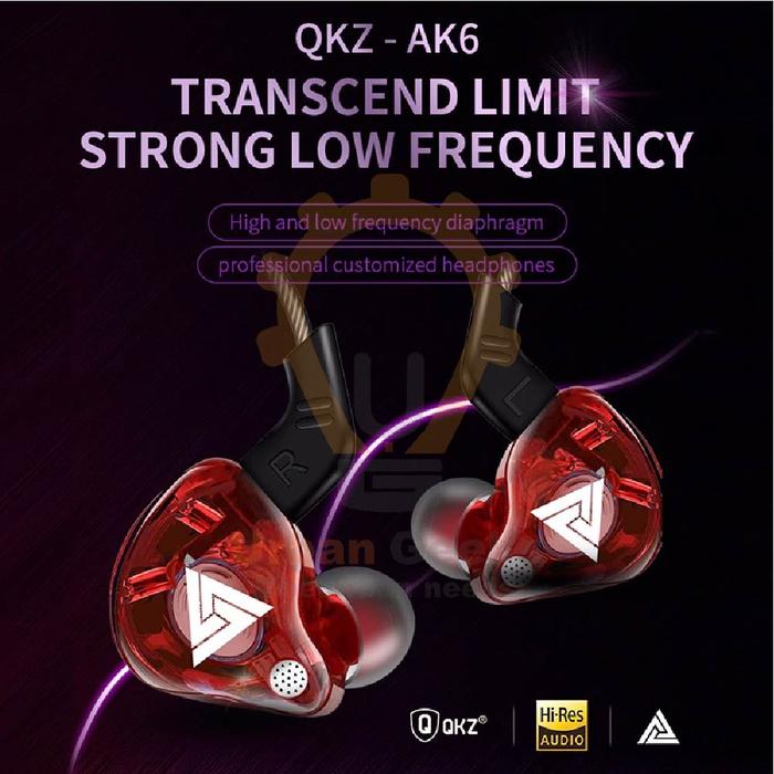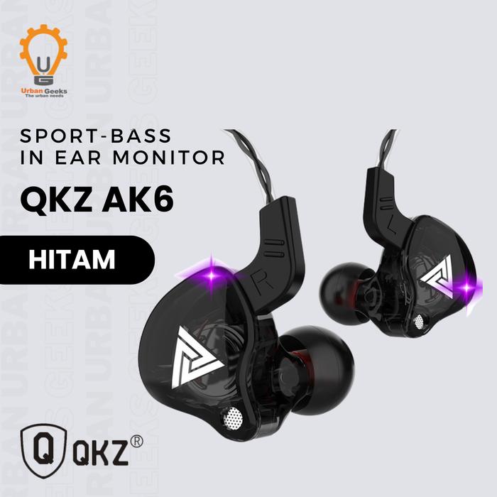 QKZ AK6 QUALITY KNOWLEDGE ZENITH WITH MIC SPORTS IN-EAR HI FI EARPHONE HEADPHONES - HITAM, EARPHONE ONLY
