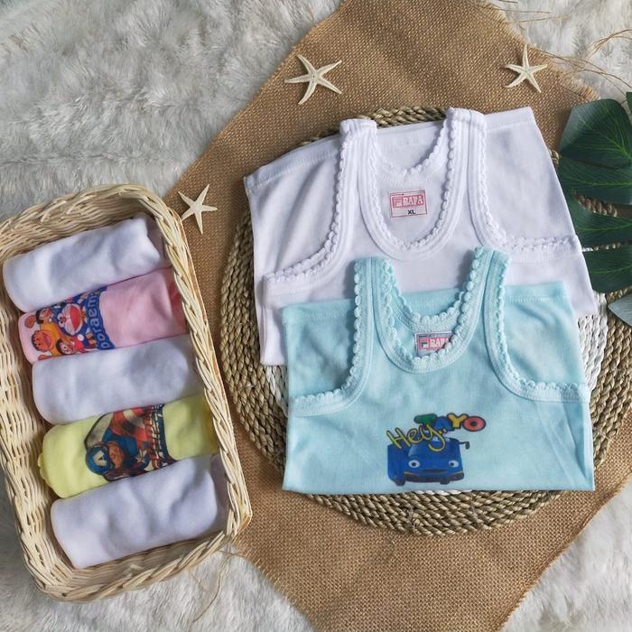 1 LUSIN SINGLET ANAK LAKI-LAKI DAN PEREMPUAN USIA 1-5TH PUTIH DAN WARNA - KUNING, BIRU PINK - PUTIH POLOS, M