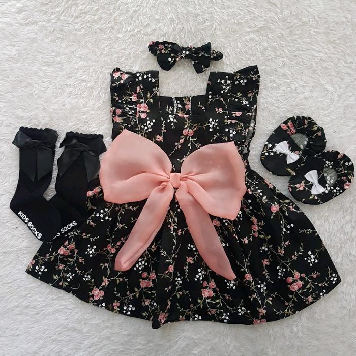 BAJU BAYI BONNET LITTLE FLOWER DRESS SET - D