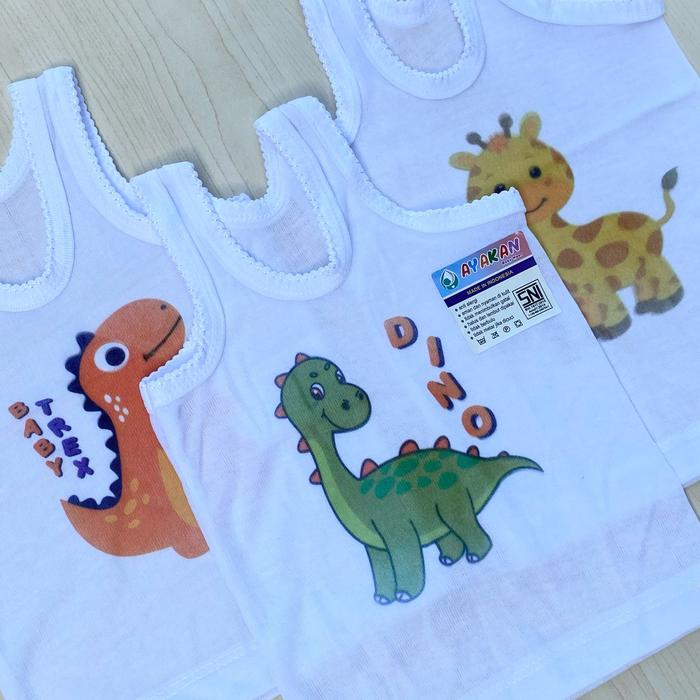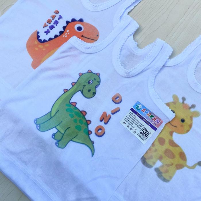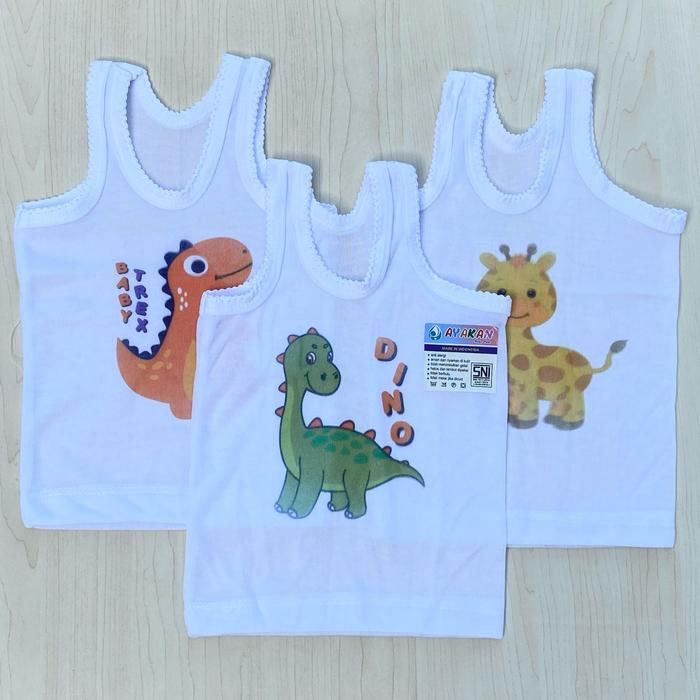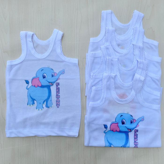 6/12 PCS KAOS DALAM SINGLET PUTIH MOTIF BINATANG AYAKAN BABY BAYI KATUN - 6 PCS, S