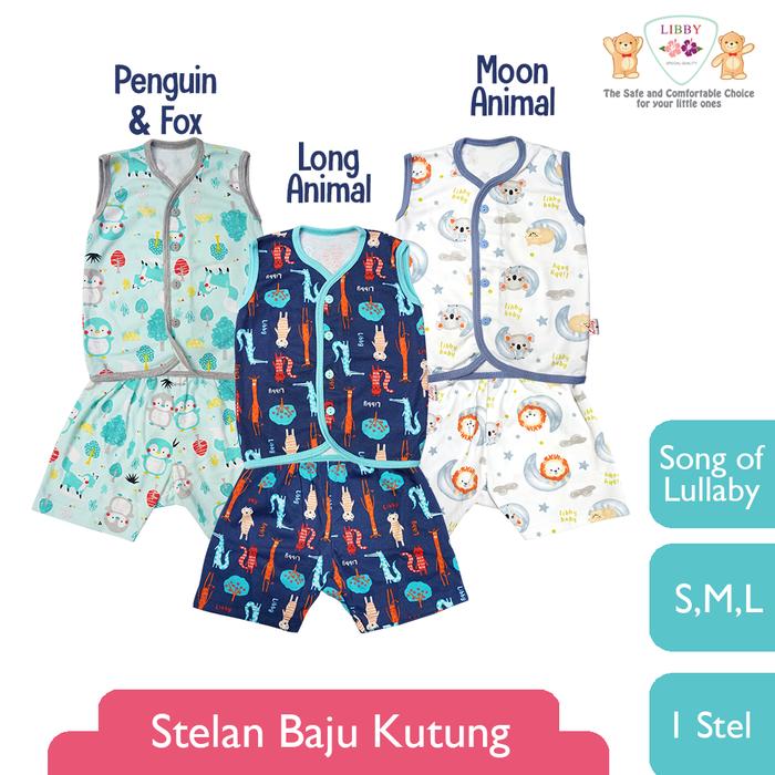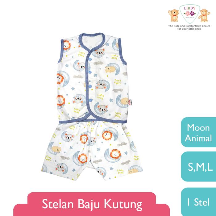 LIBBY 1 STEL BAJU KUTUNG-CELANA PENDEK ANAK KECIL MOTIF SONG OF LULLABY (1STEL) - MOON ANIMAL, M SMALL