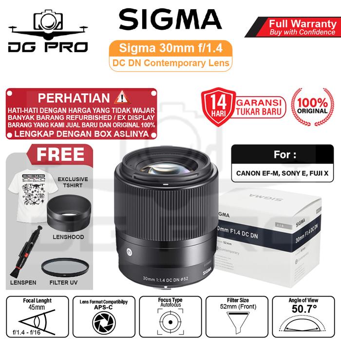 LENSA SIGMA 30MM F1.4 DC DN FOR SONY E / FUJIFILM X / CANON EF M MOUNT - ORIGINAL - FUJIFILM X, PAKET STANDARD