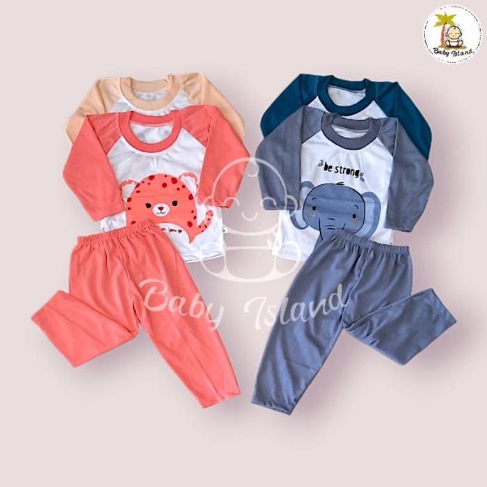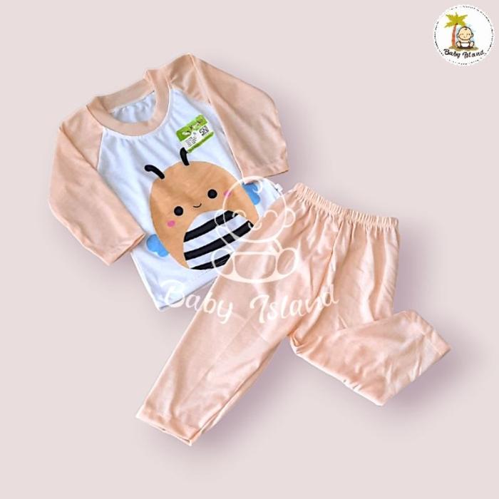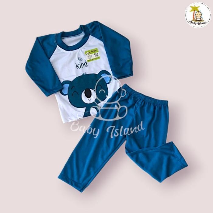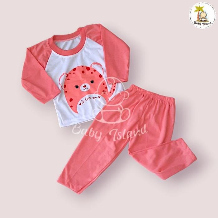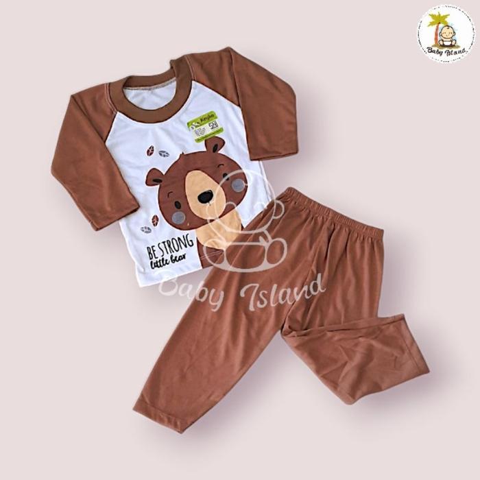 SETELAN KAOS BAJU CELANA PANJANG PIYAMA ANAK LAKI PEREMPUAN 1 2 3 TAHUN / SET BAJU TIDUR BAYI ANAK MOTIF LUCU - COKELAT MUDA, S
