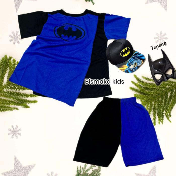 SETELAN ANAK LAKI-LAKI USIA 1-10 TAHUN BATMAN SAYAP LENGAN PENDEK BISA SET TOPI DAN TOPENG/BAJU ANAK MOTIF KARAKTER BATMAN WINGS - BATMAN SYP PDK TOPI, 1 TAHUN