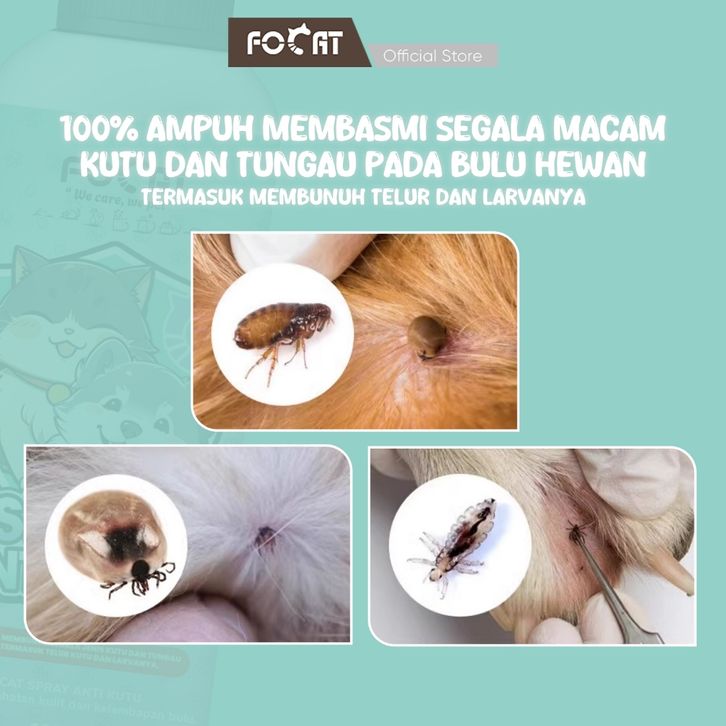 FOCAT SPRAY PEMBASMI KUTU KUCING ANJING N18 PET FLEA REMOVER OBAT AMPUH PENGHILANG TUNGAU KUTU ANABUL