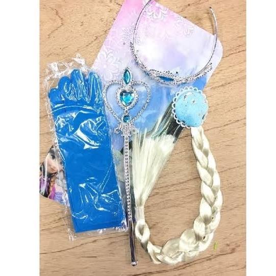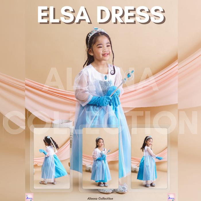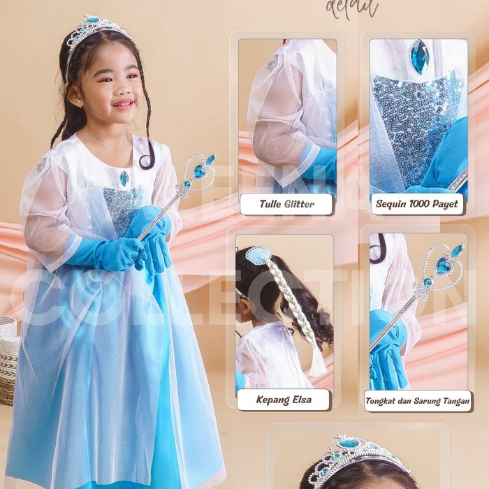 DRESS ELSA FROZEN GAUN ELSA FROZEN 3-11 TAHUN - AKSESORIS 4 SET, 3-4 TAHUN