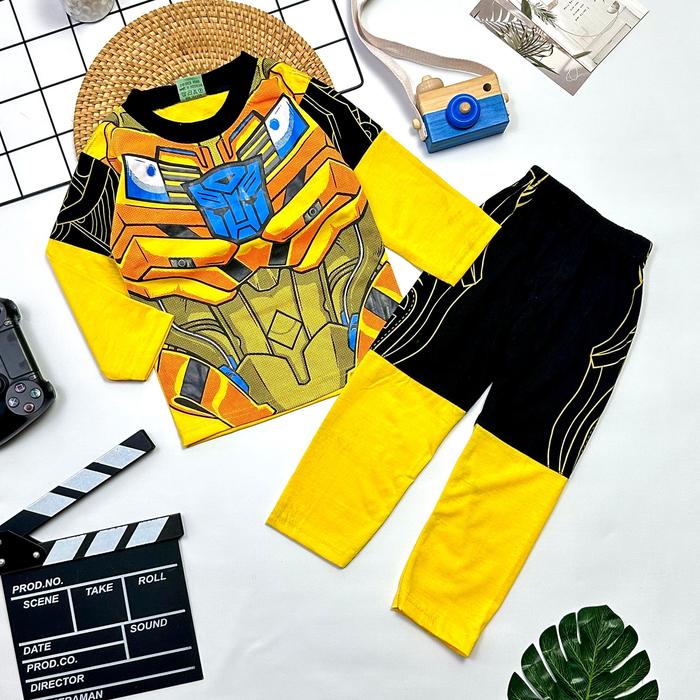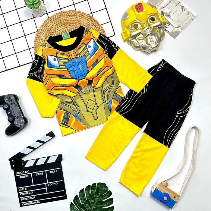 BAJU FASHION SETELAN ANAK MOTIF BUMBLEBEE KOSTUM CELANA PANJANG / SETELAN KOSTUM BUMBLEBEE LENGAN PANJANG ANAK LAKI LAKI - KOSTUM + TOPENG, 1 TAHUN