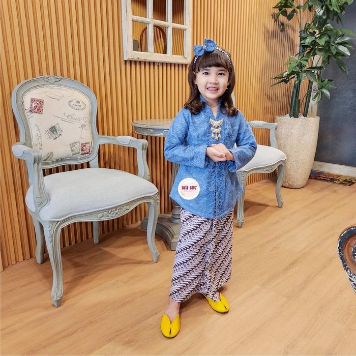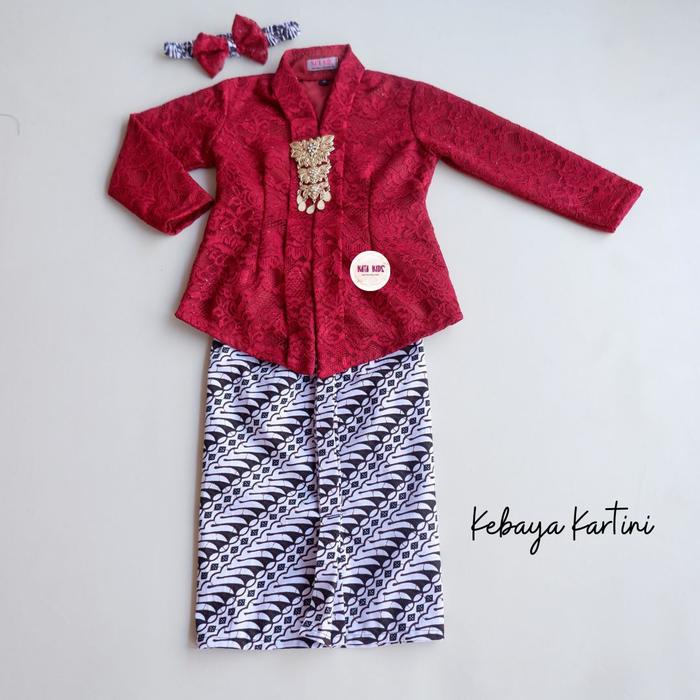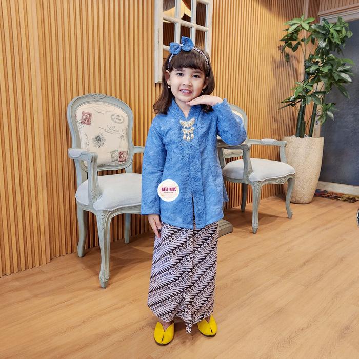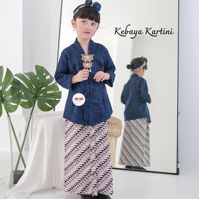 KEBAYA ANAK KARTINI/ KEBAYA KARTINI PANJANG ROK PUTIH - NAVY, S