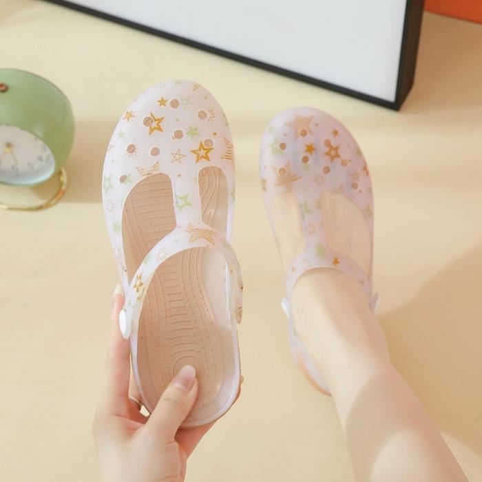 OKAIDO OFFICIAL SANDAL SEPATU WANITA MOTIF GAMBAR STAR DAN BUNGA KARET JELLY NEW ARRIVAL COKLAT PINK - UNGU STAR, 38